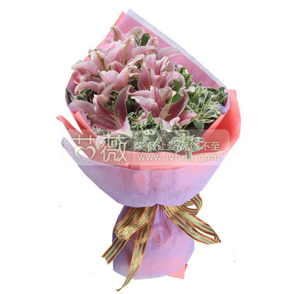 9枝粉香水百合,高山积雪点缀 |