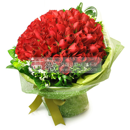 99枝红玫瑰 ,外围水晶草,剑叶,巴西叶点缀 |