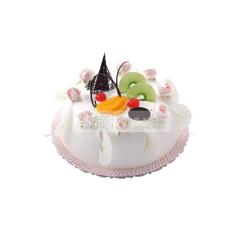 一圈粉色的鲜奶裱花;配上抽象的巧克力网;黄桃与其樱桃相呼应;执着的甜蜜由此展开; |