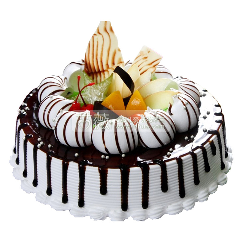 圆形欧式蛋糕,时令水果、巧克力装饰 |