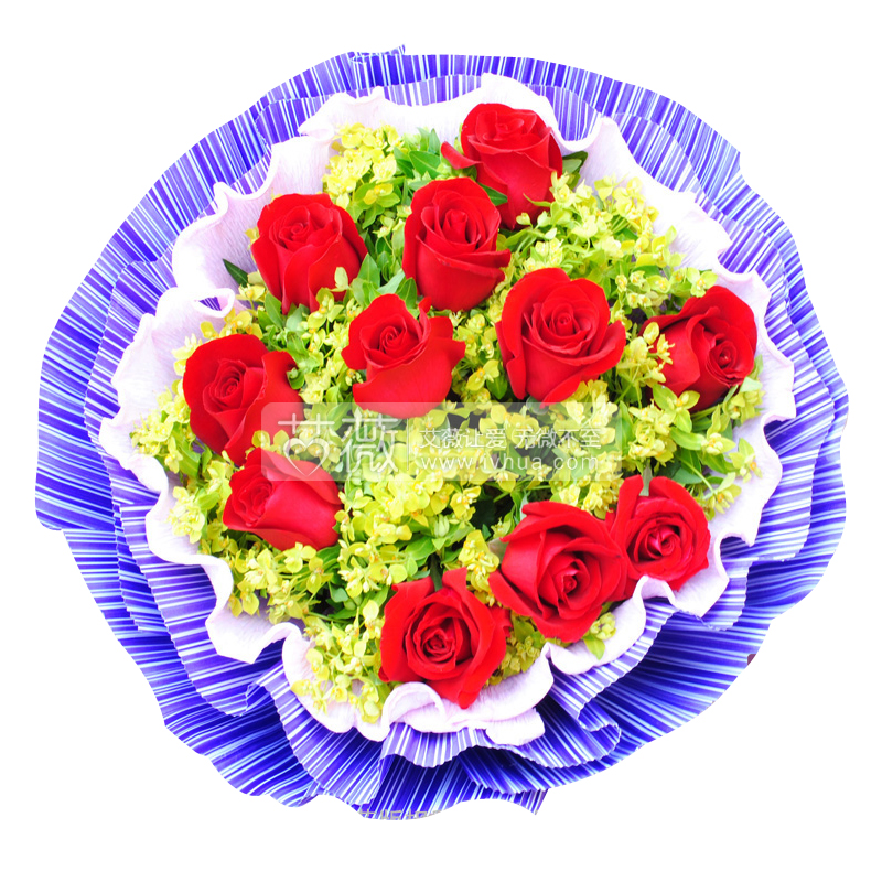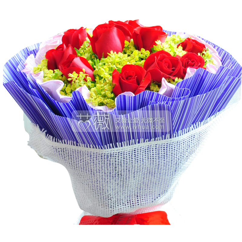 11枝红玫瑰,叶上黄金或黄莺绿叶丰满 |