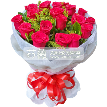 19枝红玫瑰,黄莺、绿叶搭配 |