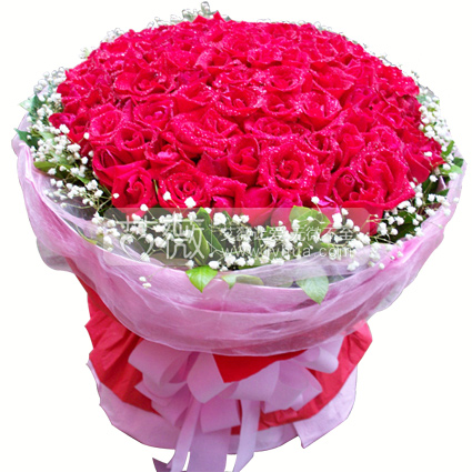 精心挑选99枝红玫瑰,黄莺和绿叶外围 |